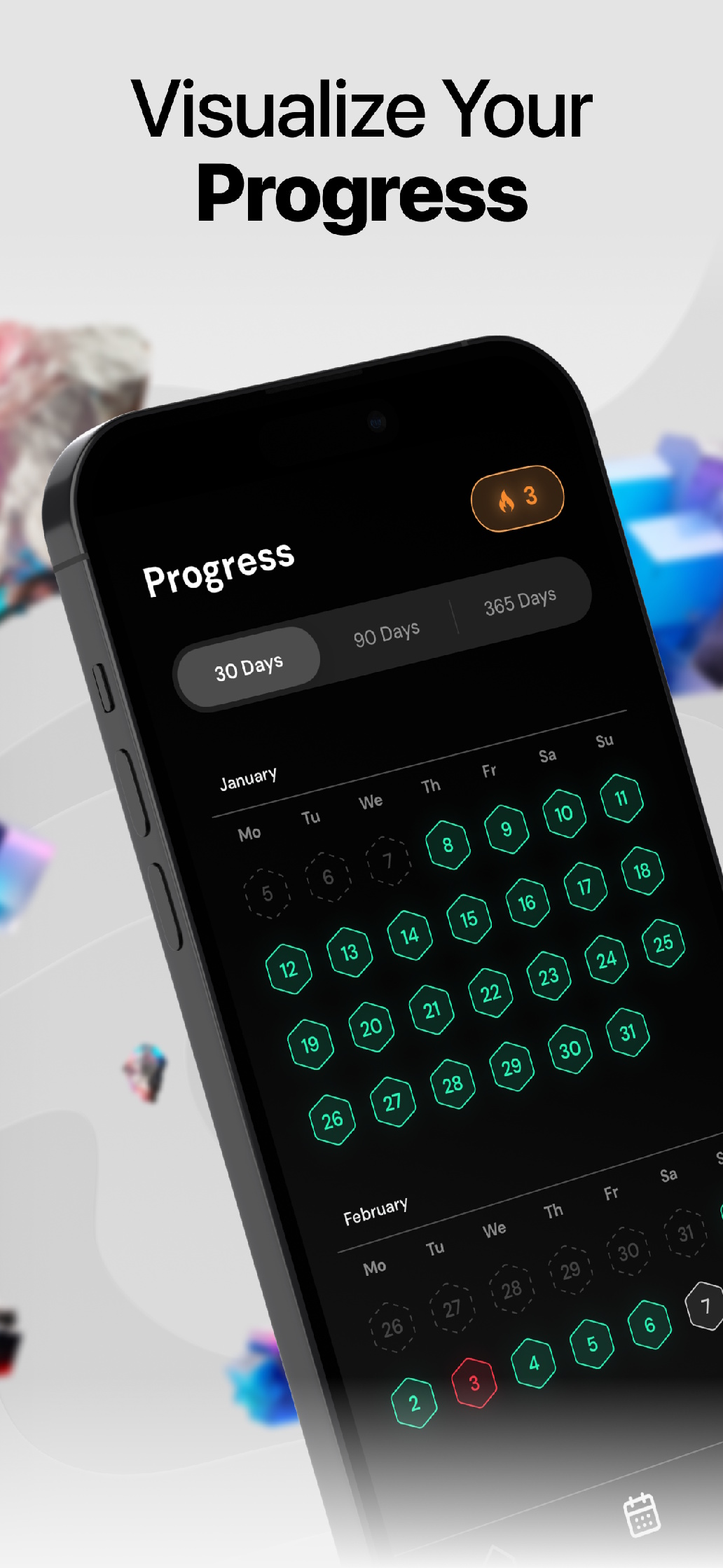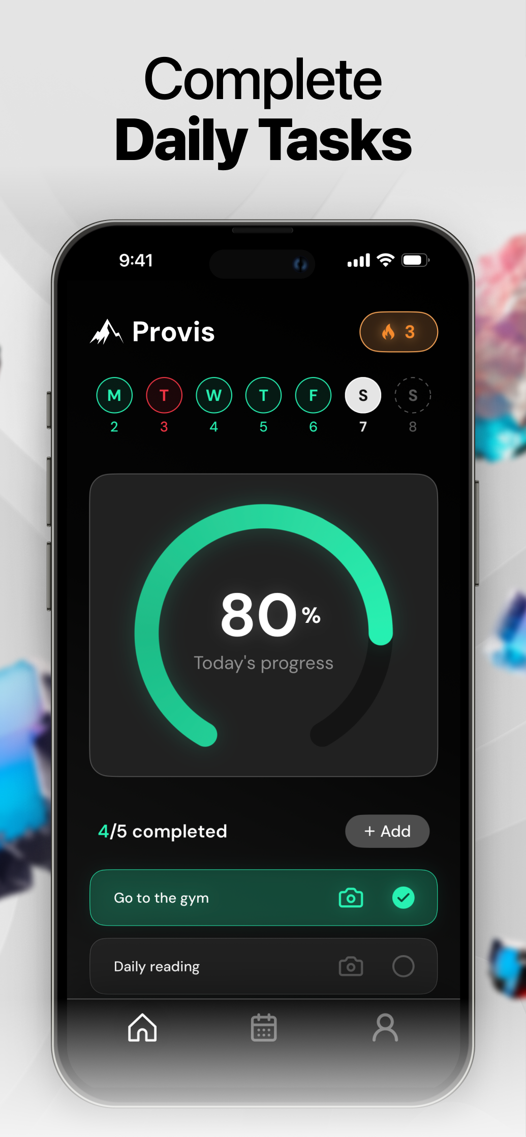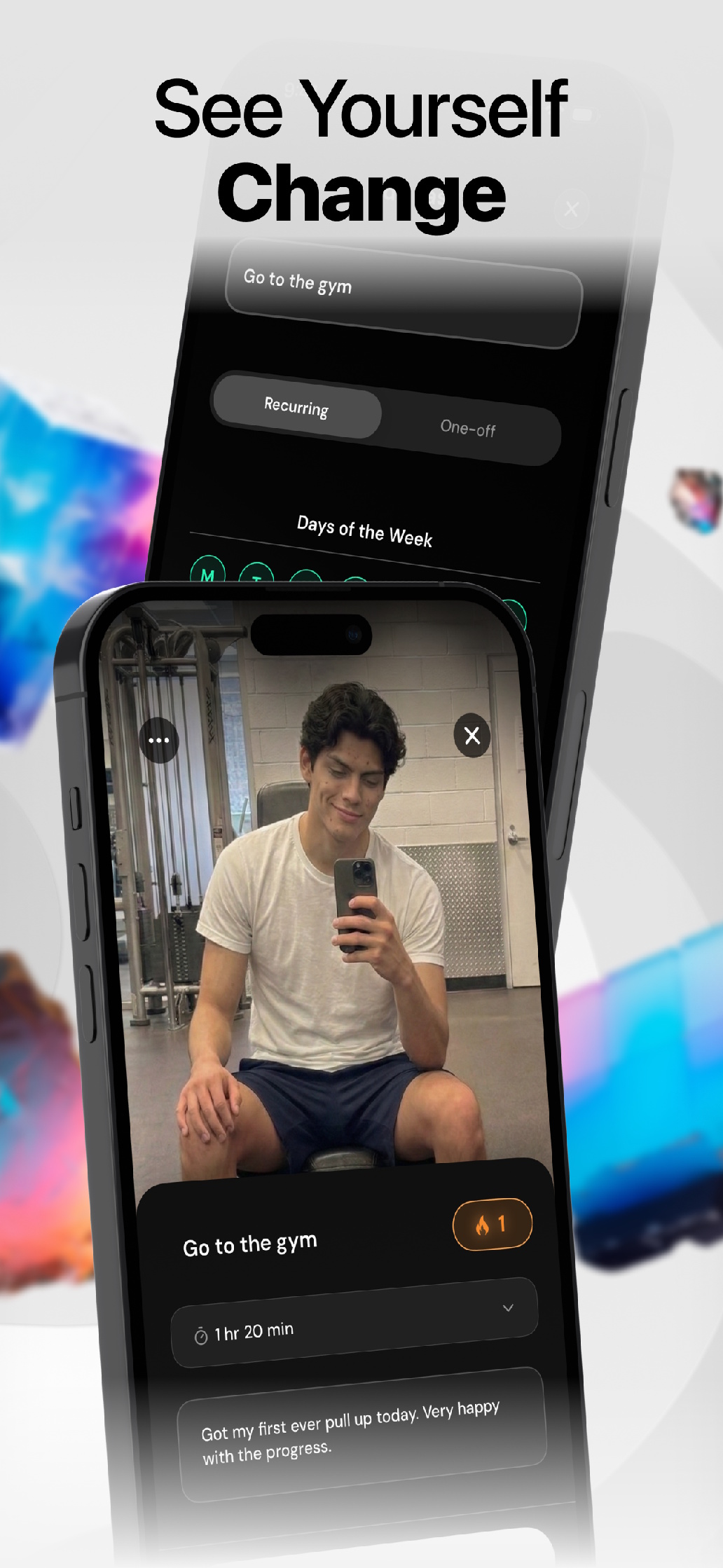 Show up each day, complete your tasks (with or without photos), build your streaks, and look back at how far you've come.